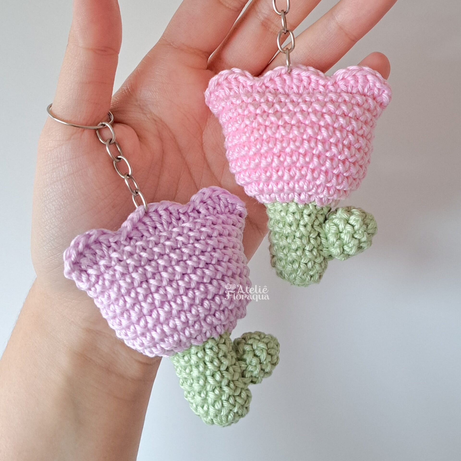 CONTEÚDO DO PDF: Passo a passo escrito do Chaveiro de Tulipa com fotos das partes mais importantes e vídeo auxiliar.