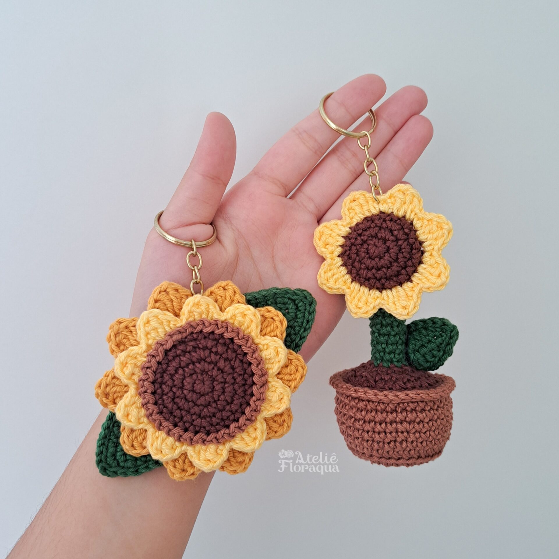 CONTEÚDO DO PDF: Passo a passo escrito 2 chaveiros de girassóis com fotos e vídeo auxiliar de partes importantes.