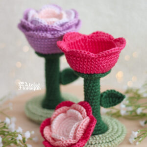 CONTEÚDO DO PDF: Passo a passo escrito da Rosa Encantada com fotos explicativas das partes mais importantes e playlist com vídeos auxiliares.