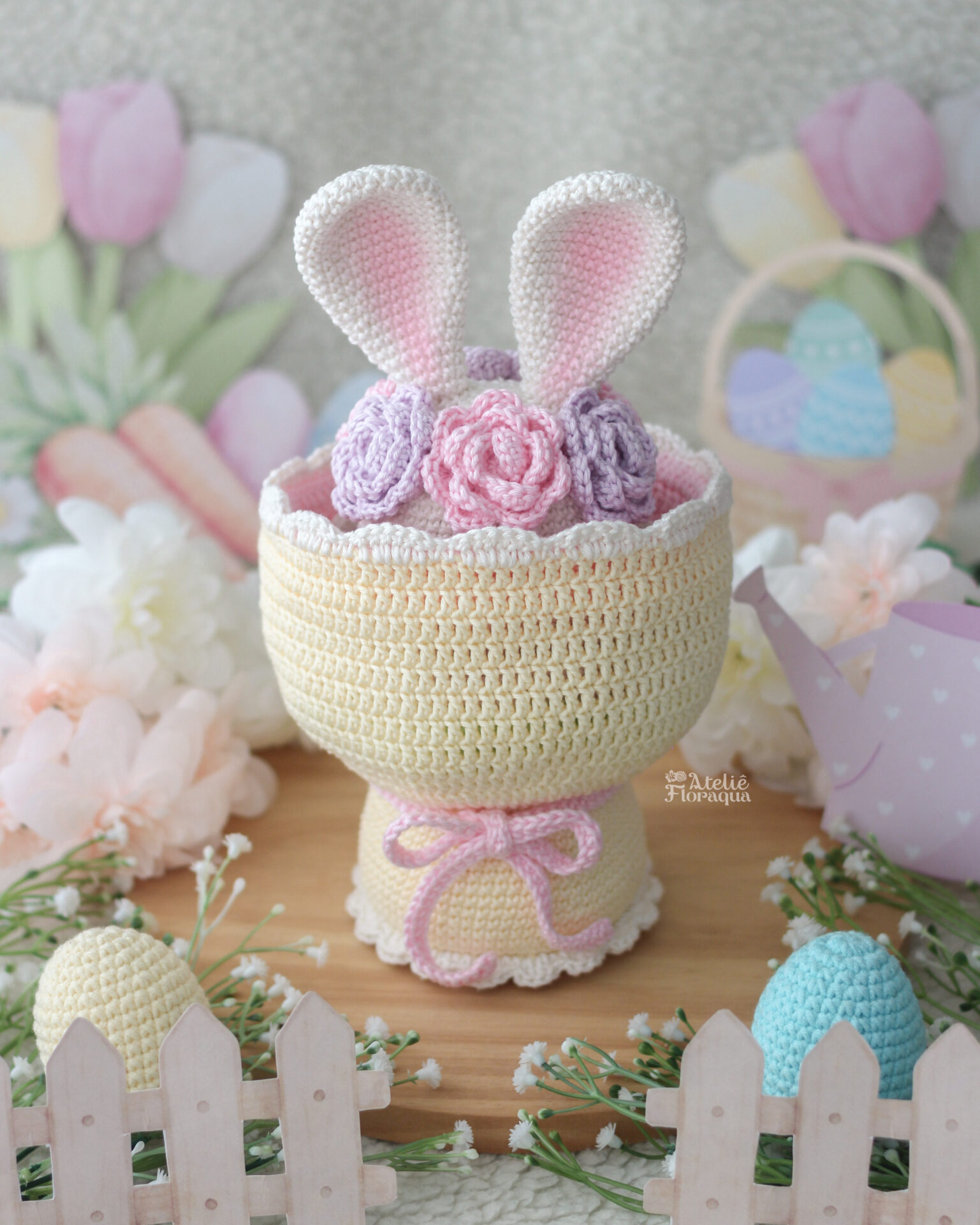 CONTEÚDO DO PDF: Passo a passo escrito da Coelhinha Rosita que virá um Buquê de Flores.